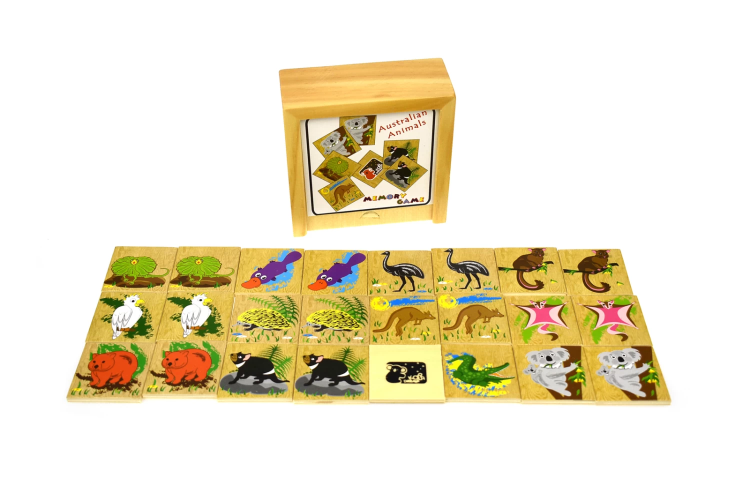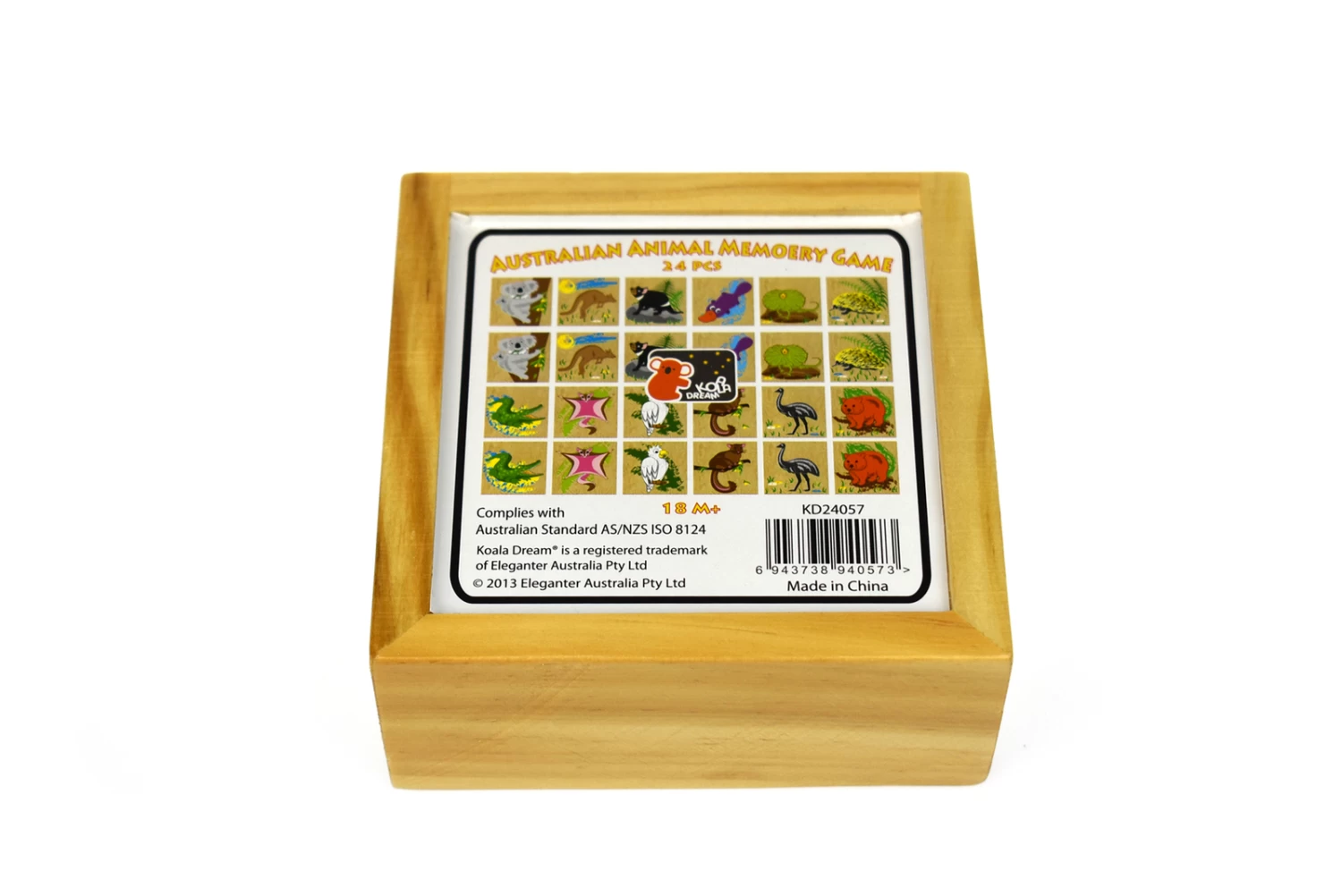 Australian animal memory game to challenge your child’s mind! There are pictures of 12 different animals, two of each. This simple game promotes concentration and memory skills thus enhances their learning abilities. Rules of the game is simple; just flip all the wooden tiles over and try to remember where you have placed the same animal. Made with smooth natural wood.