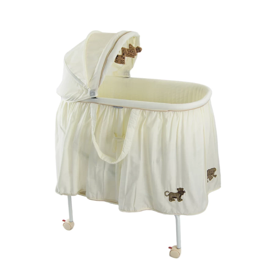 Unlike other bassinets, the Breathe Eze Classic Bassinet bassinets include a Breathe Eze mattress, embroidered soft toys, fitted sheet, quilt, large under basket for storage, 4 lockable wheels, an adjustable hood, accented skirt, mosquito net, and convenient carry handles. The collection includes 5 different beautiful designs to suit any nursery space including Safari 4 Animal, Rocking Horse Navy, Pink Satin, White Satin and 3 Bears Cream – so there will always be a design perfect for your baby’s space. Features Large adjustable hood Quilted side wall for extra comfort Carry handles for transportation (not including baby ofcourse) Elegant mid length skirt to hide under basket Large under basket for storage Locking castors for maneuverability from room to room and up to your bedside babyhood Breathe Eze mattress Quilt Fitted sheet Fitted and full insect net Soft hanging toys Strong and sturdy stand Great colour options: Safari 4 Animal, Rocking Horse Navy, Pink Satin, White Satin and 3 Bears Cream