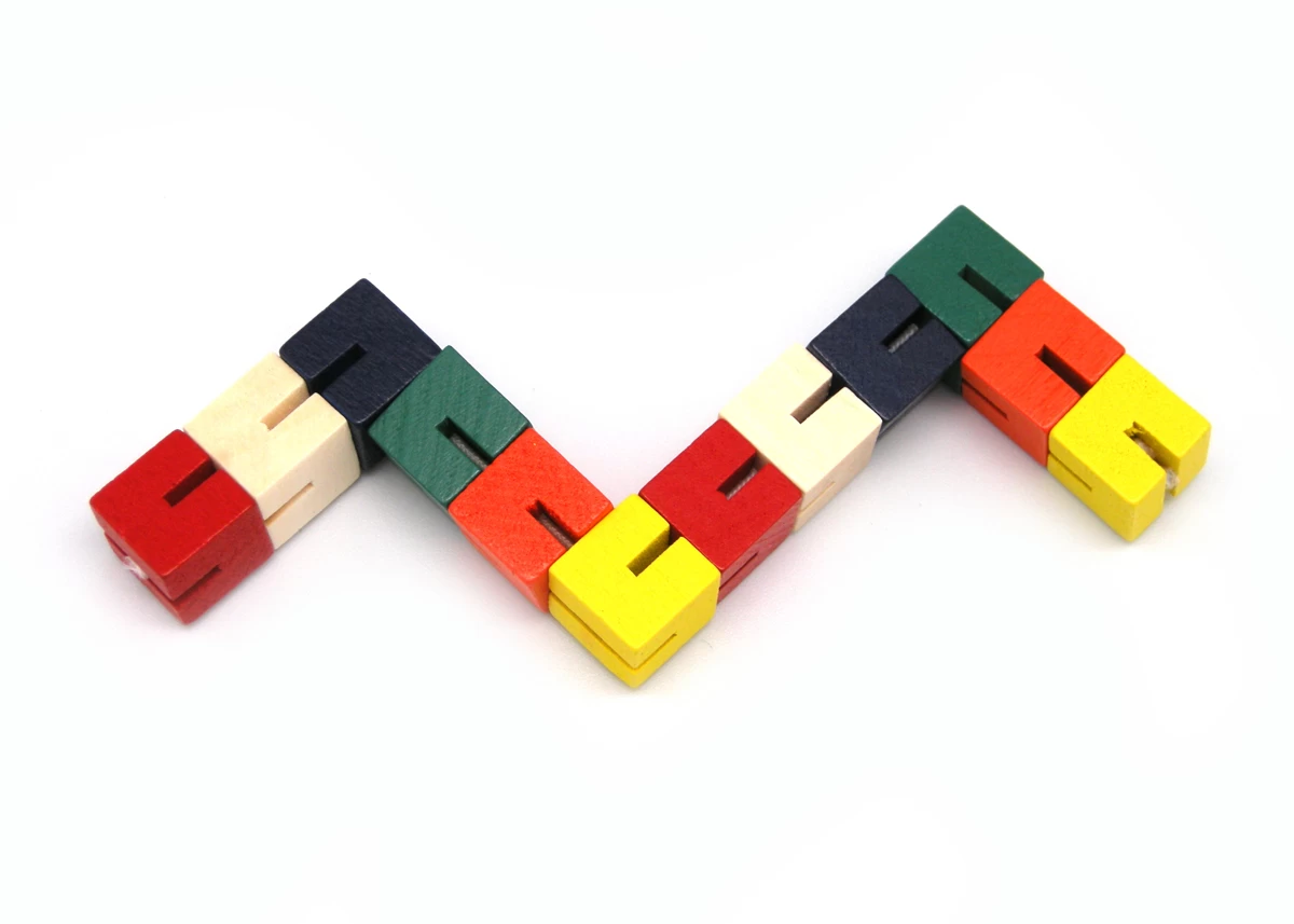 Twist and lock blocks are made with good quality wood. Paint used are nontoxic. These wooden blocks are help together with a piece of elastic so they can move freely. Can be twisted into different shapes thus helps with fine motor skills, hand and eye coordination and promotes problem solving skills. Price listed is for a single piece.
