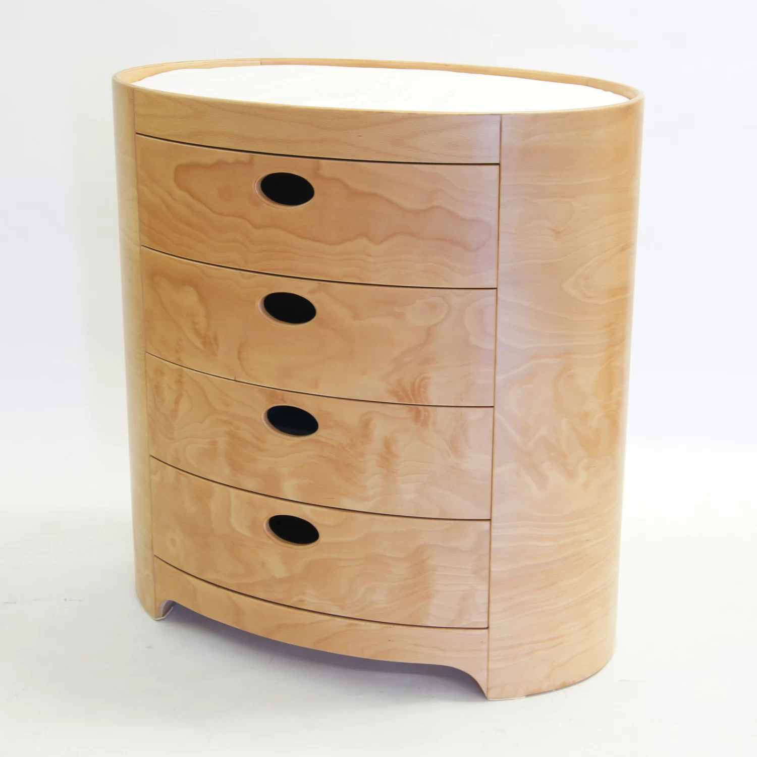 The Kaylula Oval Chest is unlike any other, that can be placed anywhere in your nursery (even in the middle) as its hand constructed oval shape is beautiful from all angles. The discreet changing table on top has great ergonomics for your back, shoulders and neck as you are now better supported whilst changing your baby. The 4 soft close drawers, are perfect storage for your baby’s delicate clothes.  Not only will this perfect little piece sit beautifully in your child’s nursery but will continue to look stunning in any space in your house, as it does not look like a traditional change table.
