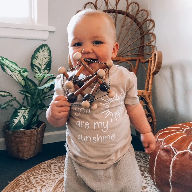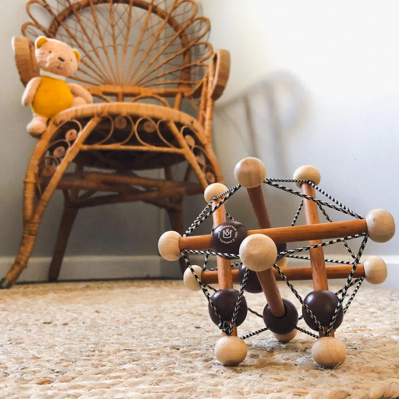A spin on the classic Skwish, the Artful Skwish takes on a new wood tone while featuring the same springy, rebounding elastic strung between sustainable wood teether rods. This multi-sensory activity provides unlimited infant entertainment. It introduces the concept of cause and effect while boosting the development of important gross motor skills such as grasping and reaching. A beautiful design of the award-winning Skwish.Â