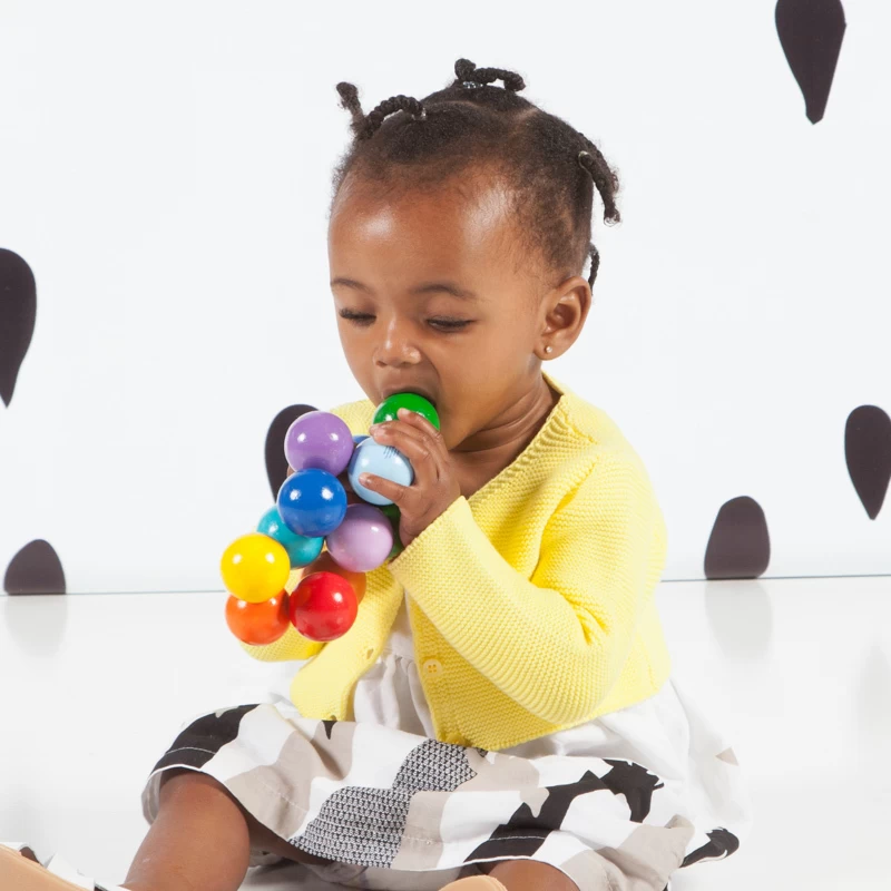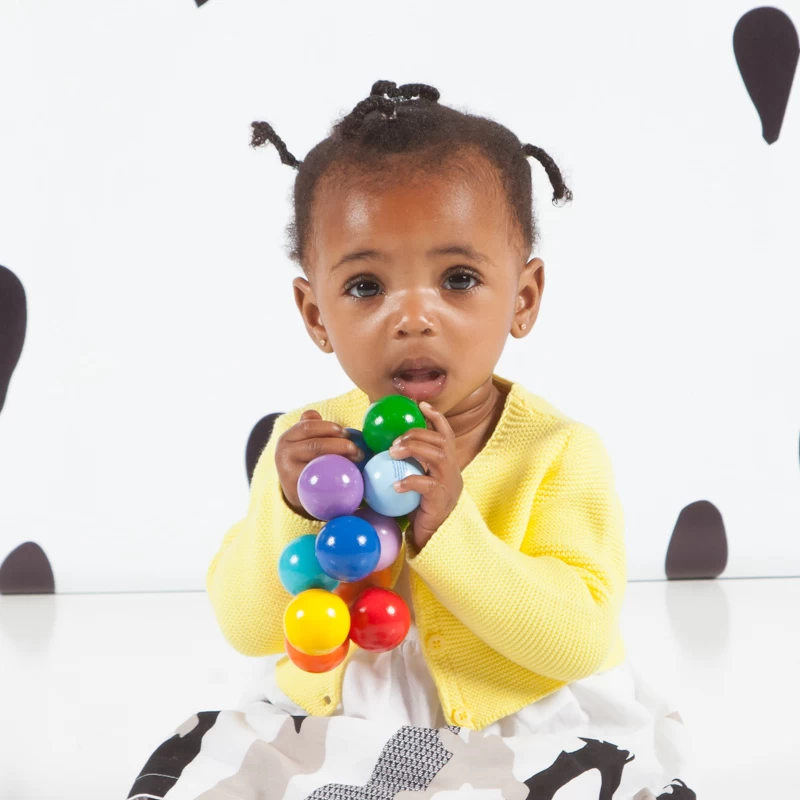 Keep baby stimulated and occupied with the Classic Baby Beads. These wooden beads are strung together with an elastic cord and can be manipulated into an endless number of configurations making it a great sensory item. Features a smooth design for easy grasping.