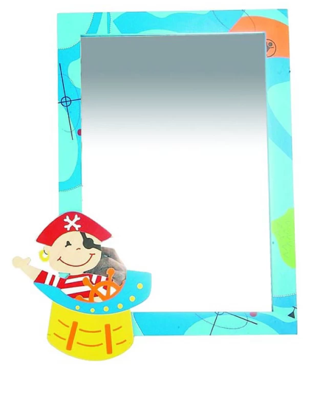 This cute little mirror is framed with a wooden pirate theme. Paint used are non toxic