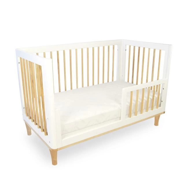 The Riya Cot with Beech and White is a Scandinavian inspired modern cot that not only looks stylish in any contemporary designer nursery but is good to you. Unlike other Scandinavian styled cots, the Riya Cot is 5 in 1 and has Babyhood’s famous smooth single hand drop side – so no heavy bending for you. This modern spindle designed cot grows with your baby from birth to toddler, so it will last for years to come, with all the conversion accessories included – so it is great value for you and your family.