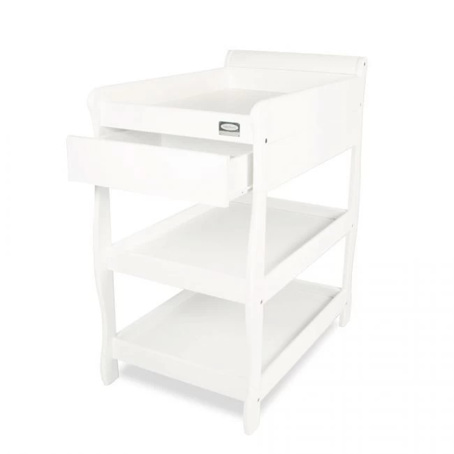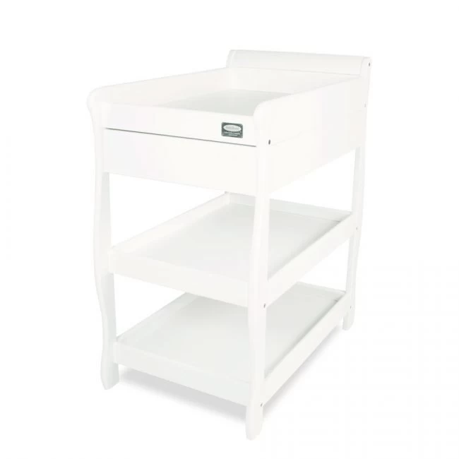The elegant Sleigh Change Table with Draw has a curvaceous back panel with a modern sleigh twist to suit any curvaceous cot. This award-winning change table is ergonomically designed to ensure that parents are at the optimal height for changing your baby, reducing back strain from heavy bending to change your babies nappies several times a day and night!