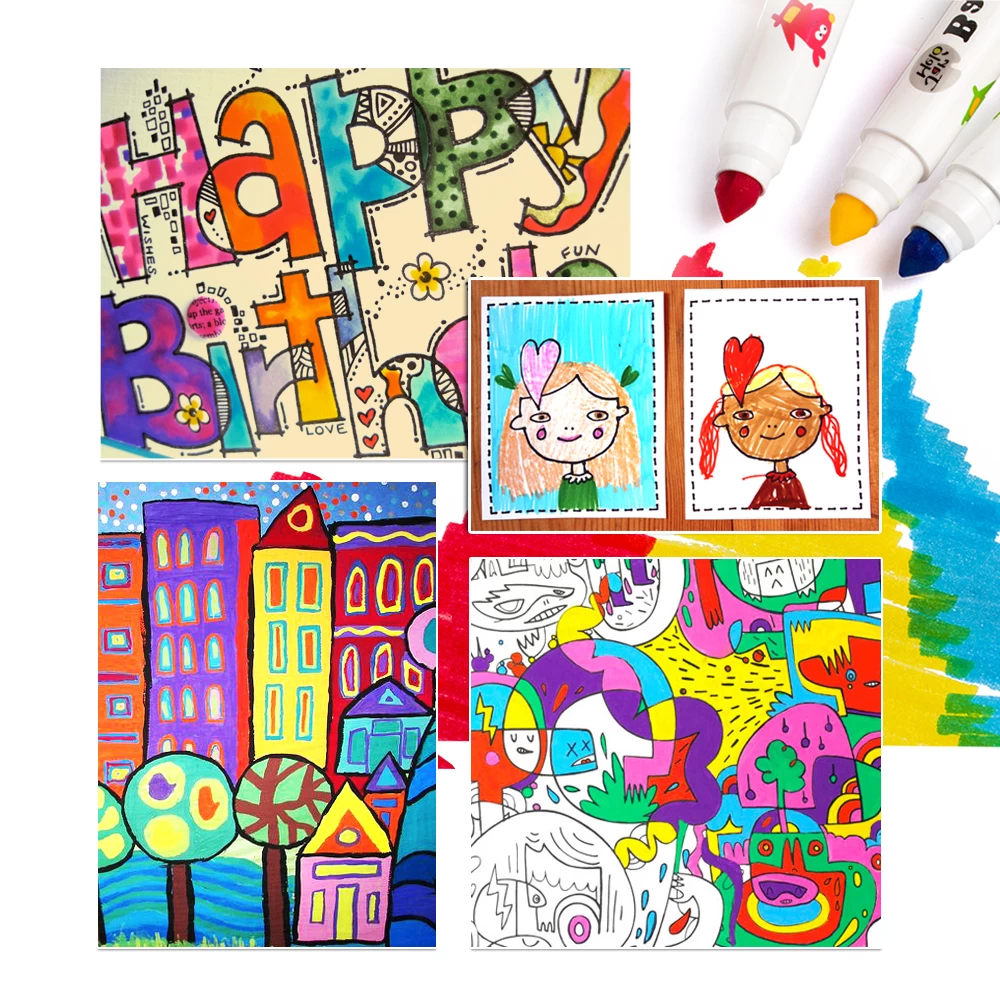 These classic washable markers are ideal for young children to use. Your child can create and draw with no need to worry about making a mess. Tips are specially formulated to provide bright, vivid colors and long lasting ink. These markers have a versatile conical tip that draws both thick or thin lines – great for both fine detail and broad colouring