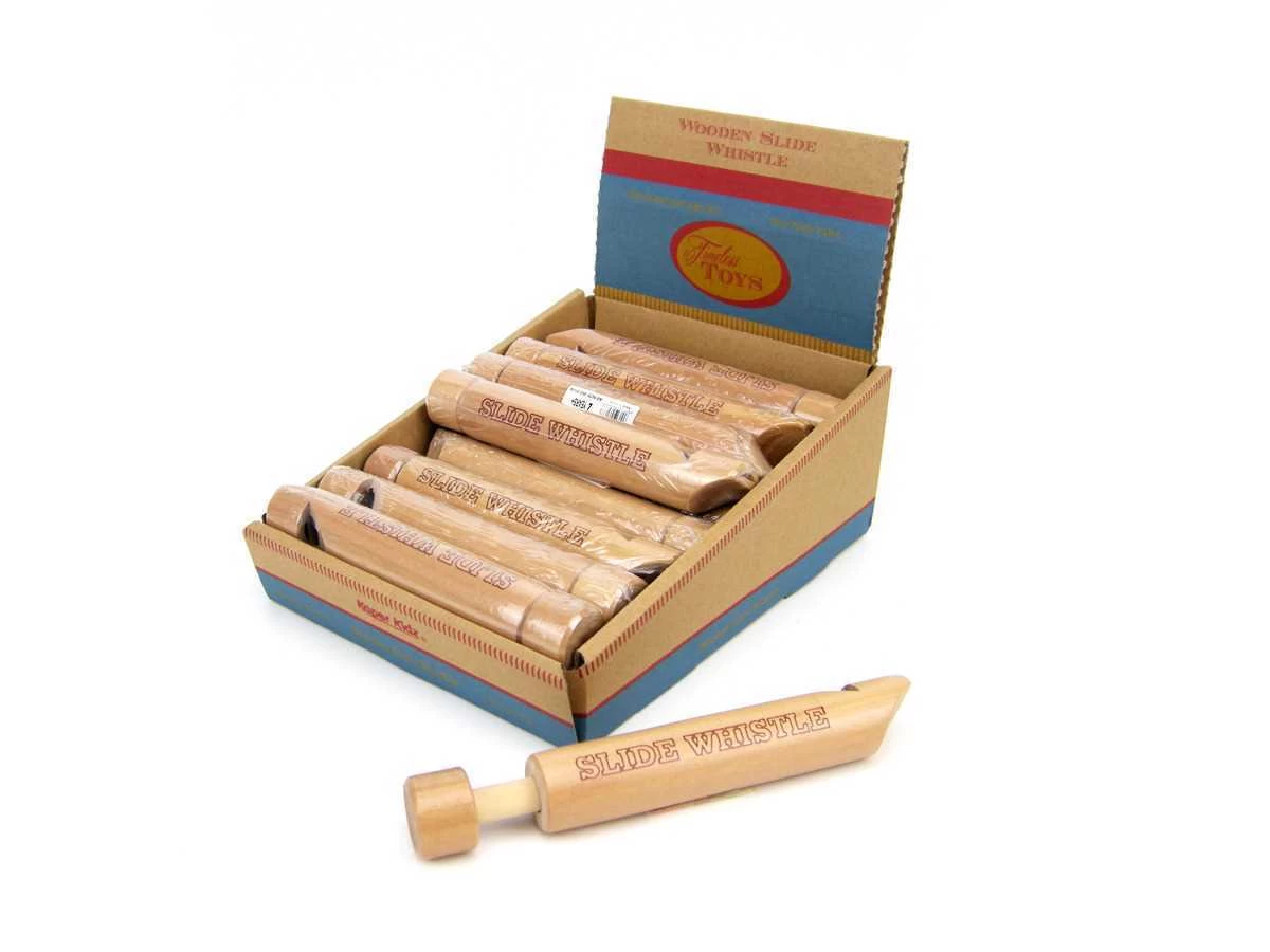 This classic slide whistle allows children to feel and hear the change in their sound.Β Made with good quality wood, smooth to touch. The natural color gives it a stylish look. Individually wrapped.
